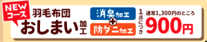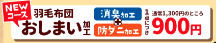 おしまいクリーニング(防カビ加工、防虫加工、汗抜き加工、抗菌・抗ウィルス加工)をお得に利用いただけます。